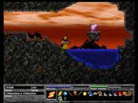 Go right and there is a platform in Picture 35 that I think was meant to let you go over the top spiked level but that doesn't work very well. The top spiked level does crumble but by the time it all crumbles you will be leaving this area anyway so it doesn't really help you at all. So run to the Picture 36 and climb up to the unlocked door to the left to get two Smite rings. Go to the right to get some Gold Xichrons and two Fire Seeds. Now go back down to the Spiked Ledge and run to the right to get to Picture 37. There is another Monster Generator and a teleporter. You'll be by a big lake after you use the teleporter.