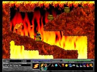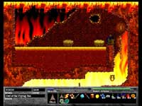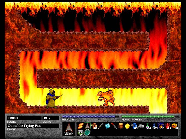 Do you think If You Can't Stand the Frying Pan was difficult? If so, you'll really hate Out of the Frying Pan since the same fire wall is still chasing you. Instead of following you from the left to the right, it's now forcing you to the bottom of the screen. You'll face spinning Dragon Cannons, pools of lava, and knife-throwing goblins that stand in your way. However, with fast feet and patience, you'll make it through okay.