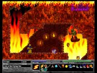 Go down and use the rope in Picture 13 to get over the lava pool and you'll be in Picture 14. Use your VBlade to break open the floor and down to Picture 15. Use your VBlade again and notice that there are some Gold Xichrons that I didn't get. It's impossible to get them the first pass through and you'll have to brave this level again if you want them. You'll be in Picture 16 after this and you can see two Rings of Smiting that you can get if you're fast enough. You also have to break the wall in front of Ferazel with the spell of your choice.